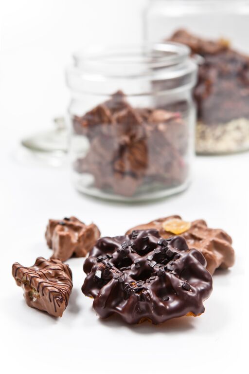 8. Melt the chocolate and dip the pieces of waffle into the chocolate so that the waffle is fully coated.