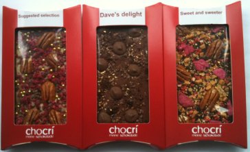 ***FREEBIE FRIDAY*** WIN A £15 gift certificate to make your own bars! Leave a comment here about what flavour combination you’d try, and/or do the same on Facebook and/or tweet “If I won @chocri_uk from @mostlyaboutchoc like this http://bit.ly/ftN5BZ I’d make …” and fill in what you might choose. Winner will be chosen around mid-day Sunday while I recover from jetlag :-S