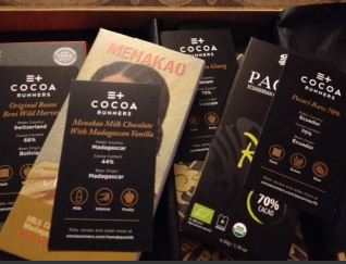 All the chocolate is bean to bar – that is, all the chocolate was made by companies buying beans and turning them into bar chocolate. There are so many people doing wonderful things with cocoa beans from Soma chocolate to Marou making chocolate in Vietnam to Dick Taylor in the US to Duffy in the UK, they all have something unique to offer but they are all scattered around the world. Cocoa Runners brings all that great global taste from the four corners of the globe to you each month – right to your door.