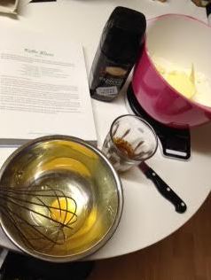 Beat the egg until frothy then add the cooled coffee into the egg and beat more.