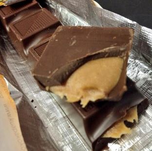 The flavour is typical Divine chocolate which I find quite pleasant. I snapped a piece off so you could see the thick caramel inside. I’ve often enjoyed a dark 70% bar and when I was low carbing I used it as my treat. The caramel is sweet with a balance of vanilla in it which, when combined with the dark chocolate is quite delicious. This isn’t meant to emulate some kind of short-shelf-life artisan chocolate caramel but rather offer an ethical, Fairtrade sweet treat for those who want something a bit yummy and a lot better for the world.