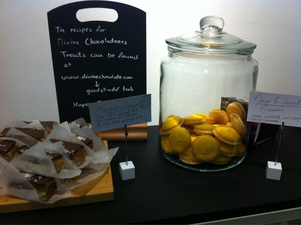 One of the stories Divine never seems to tell is that it strives to be Fairtrade in everything and they make choices based on their ability to source Fairtrade products. Their dark chocolate bar is, I believe, over 95% fair trade with only the soy lecithin being not Fairtrade and the milk bar is over 80% Fairtrade with only the milk not being fair trade. It is also palm oil free as are *all* their products, including the way the ginger is prepared for their ginger bars *and* they had a special caramel made which was palm oil free.