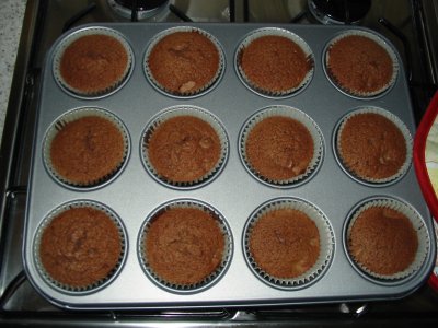 Now, I put heaped dessertspoons of the mix into each cup and tried to get it as even as possible. I then put the cupcakes in the oven and licked the bowl. And the beater. And the spoon, fork and spatula. It would have been wasted on the dishwasher and clogged it up. That’s my excuse at least.
