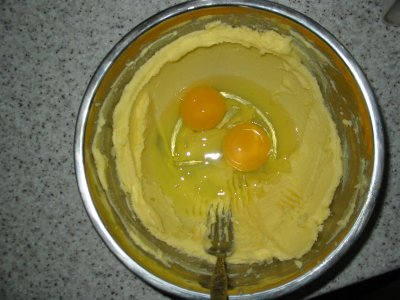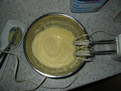 Now, smoosh the butter a lot. Because at this point I haven’t remembered I have a hand blender. Remember, it is from the 70’s or something so I can’t be expected to remember. Now, once smooshed, blend it until light in colour then blend in the caster sugar. Now you have a mix of fat and sugar… *drools*