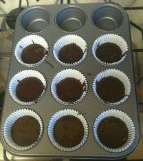 I mixed the chocolate brownie mix in minutes. It was far too easy! Brownies should be more difficult than this! But no – it was easy easy easy. I decanted them into cupcake papers and added water to the empty holes. I don’t know why – I just heard somewhere you were supposed to.