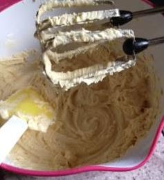 As usual, cream the butter with the sugar together until light and fluffy. The sugar should not be gritty. I found while the white creamed into the butter readily, the golden caster did not. For some reason it just didn’t combine as well.