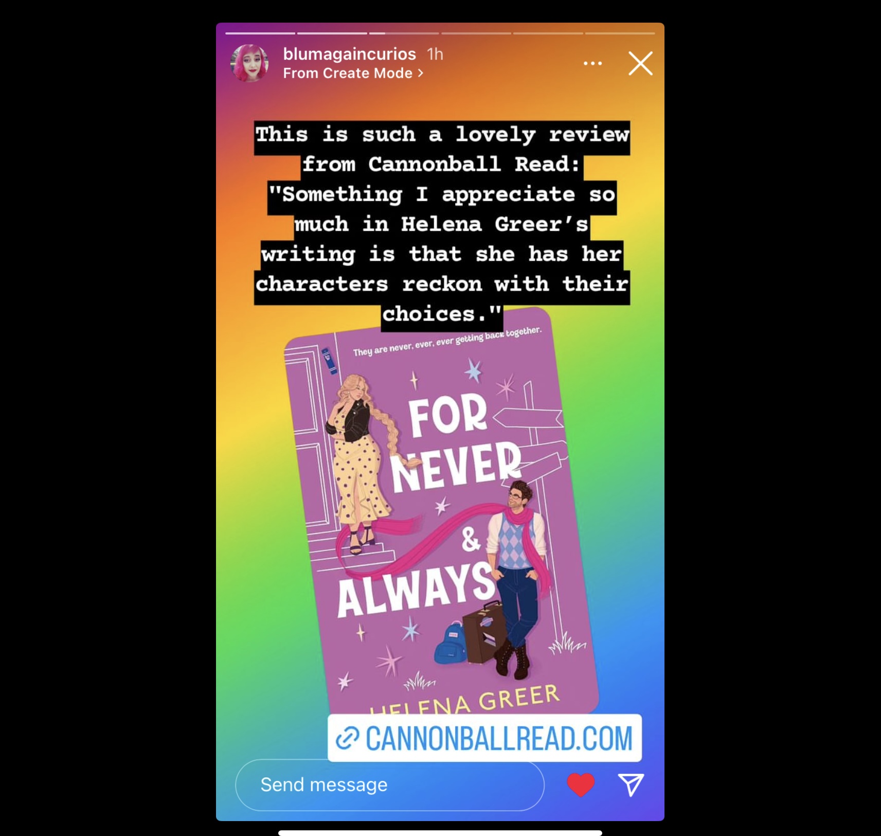- Author Jen Comfort used a quote from Emmalita’s review of What is Love? in her marketing on Instagram (slide 5). In a conversation in DM’s, Jen Comfort told Emmalita that she laughed at “probably horny.”