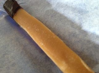 These sticks of fudge are slightly more solid than Fudge Kitchen usually makes but they are wrapped up tightly in wax paper and sold in boxes with a longer shelf life than their usual fudge which is made on the premesis regularly and very fresh.