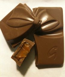 This lovely gift is a good sized piece of chocolate which is divided by the ribbon around the box into four pieces. Half the bar is caramel filled and half is plain. See what they did there? You could share the bar and someone gets all plain and someone gets all caramel or you could each get one part caramel, one part plain.