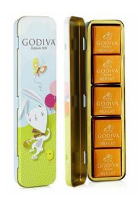 Chocolate egg pop treasure (24 pops). More for adults, this lovely yellow ribbon wrapped box contains 3 each of the full assortment of filled Godiva mini egg POPS which includes 4 dark, 3 milk and 1 white chocolate, it’s a tasty Easter treat that’s just right for sharing. Priced at £22