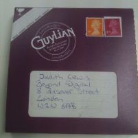 This box of Guylian chocolate hearts was specifically designed to be posted to the person of your choice. It comes with a card as part of the box’s design and has a space for your message on the inside (or stickers and a message, or a pop-up message, or a small note, or an essay in 7pt font, no spaces, double sided). The card is designed so the jacket wrapping around the outside that you write the address on is detachable so that the card can be displayed by the recipient for their birthday, Valentine’s day or whenever.