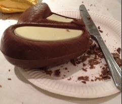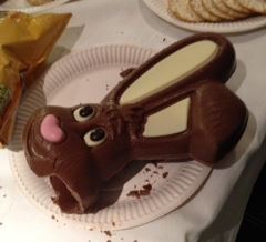 “It’s their standard milk chocolate” he countered and I knew I was doomed. “You know what it tastes like. Keep the bunny whole for the convention. It’ll be impressively awesome and we’ll be sure to win”