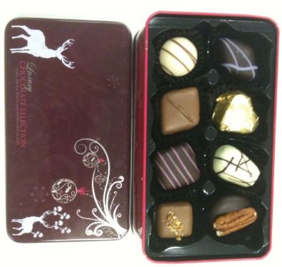 Look for the tin and grab a small one – 16 chocolates and while not top notch, still decent quality.