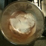 Add this mix once completely melted to the main batter mix and blend in slowly until completely mixed in. Mmmmmm yummy. At this point I could just eat it raw but I know the best is yet to come…