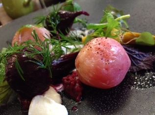 Next we had either scallops or beetroot. As you can see I opted for beetroot and boy was it interesting. You can see a yellow one, an almost white one and a deeply red one. The dish was amazingly diverse with all sorts of flavours going on. Absolutely fantastic however I don’t know what is missing.