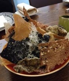 The home made crisps were too beautiful to eat but what was missing from them? Hard to say as they and the bread were gorgeous. The bread came with olive oil and lava salt – yum!