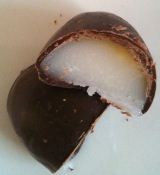 The egg is described as a “buttercream” which is apparently Canadian parlance for “sugary sweet with a hint of synthetic vanilla” and really code for “addictive as all heck”. As you can see from the image, they have imagined these eggs as having a yellow “yolk” surrounded by the white as in the egg itself but as you can also see, there is hardly a hint of yolk. I blame time (and time – which wait for no one it seems) for making these taste better in my memory but it could be the size. When I was younger, the mini ones were better than the full-sized ones but those had an appeal all their own related to the lovely way you could slice a paper-thin slice and… oh wait, back to the review…