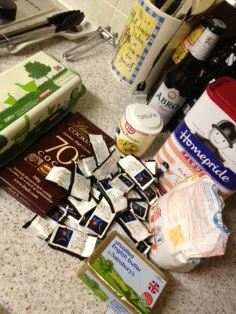 • Melt chocolate and butter together by placing into a bowl sitting over a saucepan of barely simmering water. Make sure the bowl doesn’t touch the water as that might burn the chocolate.