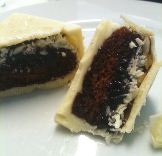 I had the good fortune to be gifted a box of these chocolates by the White Rabbit himself just before he dashed off to some very important date he claimed to be late for. I scurried back home to try each and every one of these flavours so I could report back on their flavour in miniature size. These are small and perfectly formed and just right for one person to enjoy.
