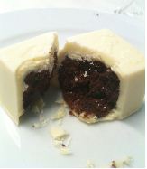 Lazy Rabbit – Bailey’s ganache & walnuts in 40% cocoa milk chocolate – very boozy brownie this! The flavour of the boozy ganache certainly dominates but the sweet milk chocolate and walnuts also come through. This is sweet but anyone with a sweet tooth is going to enjoy biting in to this mushy wonder brownie bite.