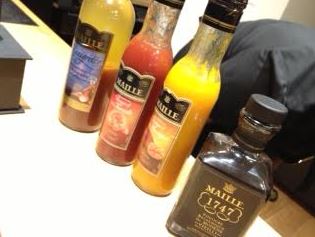 So what is a Unilever brand doing with a shop on Piccadilly? One step into the quaint French interior is likely to explain a lot. Fully branded for Maille, this is more than a brand showcase. This shop in the same fashionable arcade Prestat can be found in, next to Fortnum & Masons, is a step into France. There are three pumps which at first look weirdly like beer pumps but they are dispensing mustard into Maille’s traditional and easily recognised mustard pots. These three pumps ma be for mustard but they aren’t your average mustard. One pump I noted was marked “mustard with Chablis white wine and black Truffle” and apparently these clay pots are brought back again and again for refills. I’d buy my dad some but I don’t know if Maille will be opening in Toronto soon enough 😉