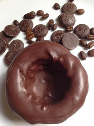 12. While those are cooling, melt the chocolate very slowly using the technique Stephanie from Boutique Aromatique uses – place the 200g of chocolate in a bowl and melt for 30sec only then remove and mix. Blitz for another 15sec and mix again. You don’t want to melt everything at once but in stages. It will melt more and then you just need 10sec and stir until you stir everything into a full melt. By doing it this way you don’t need to re-temper because you don’t warm it up enough to untemper it.