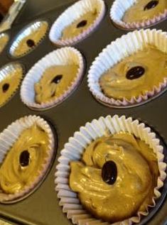 Place a single chocolate coffee bean on the top from the 12 you held back to top each cupcake with one now before baking.