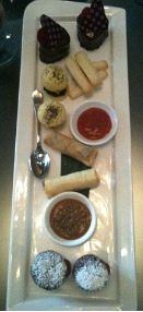 We perused the menu. Now, knowing as be both did that the chocolate was Callebaut we were not expecting anything much more than middling so we wanted to find something imaginative and innovative and I think we did. We eventually decided on Les Bijoux Sucrés. Yep… a pretentiously French-named dish which is basically a chocolate dim sum. Speaking of which I believe the Grand Imperial is doing one for Chocolate Week… but I digress. So what, you may ask, the heck is a Les Bijoux when it’s at home (or in English). Well, it is a combination of Spring Rolls, Kiss Me Kakes, Brownies and MoRoCo “Burger and Fries” which is actually cake, chocolate and cookie fries and probably what made it worth getting.