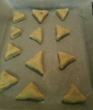 Quickly cut strips or circles and either fold a square into a triangle with a dark chocolate Toblerone triangle inside or place a triangle between two triangles, circles or just play with shapes. You have to use the dark chocolate as the milk and white don’t bake as well given the dough and temperatures.