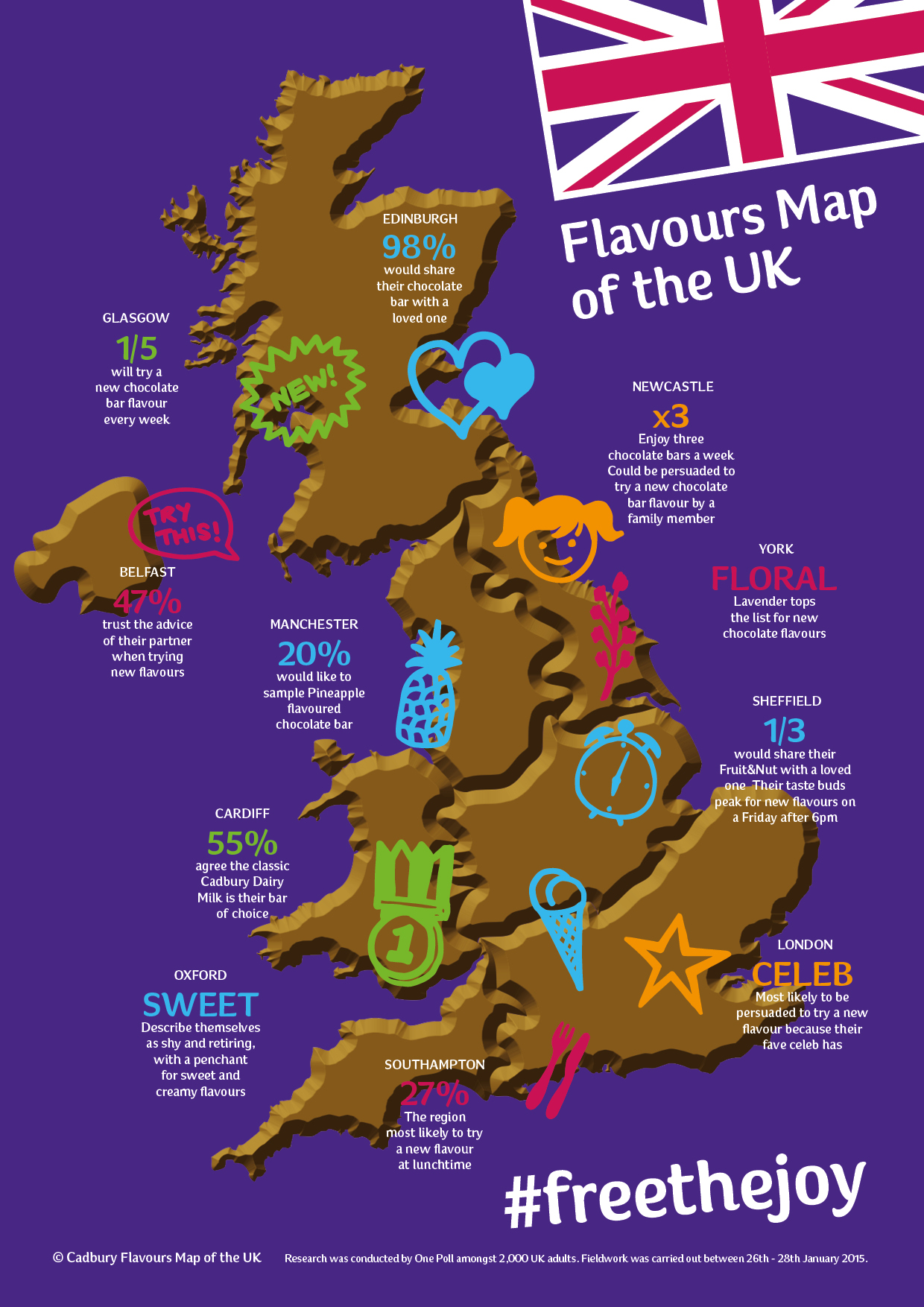 Cadbury has partnered with leading taste psychologist Greg Tucker to uncover the regional differences when it comes to our favourite flavours. In a nation-wide study into what tickles the nation’s taste buds, it’s been revealed that where we live can have a big impact on what we like and how adventurous we are with new flavours.