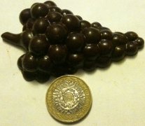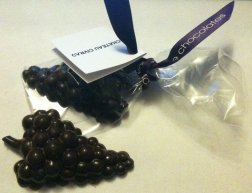 The scent of the chocolate is full and rich and delicious. This huge chocolate is a beautiful delicious piece of mastery in design and taste. I started at the end of the bunch of grapes, as any self-respecting wanna-be pampered princess would – as if being fed the grapes. The intense chocolate hit as I bit in made me think it would be more of a dark chocolate but it was only a 64%.