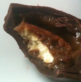 The pecan is set into the sea salt caramel with is sealed into each half with a chocolate seal before the two halves are set together. As you can see, the pecan is perfect and there is a heck of a lot of caramel. So I levered the rest of the top off to reveal the rest of the sea salt caramel and licked the smallest little lick of caramel out. HEAVENLY BLISS! Of course I had some bites of the pecan with chocolate and sea salt caramel and it is just delicious. The sweet pecan really balances off nicely against the caramel and chocolate.