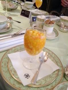 Paul A Young is quite aware of this and so spent six months working on his creation of the chocolate afternoon tea at Grosvenor House. We started with a palate cleanser of mango and pineapple to clean our palate ready for the treat of a feast which was coming our way. This was absolutely huge, being a full wine glass of finely chopped fruit, and surely set us up for being full before the end (well, I was but I did scarf a lot of scones and salted caramel sauce).