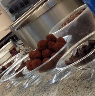 The truffle, after the intensity of the higher cocoa content chocolate was quite sweet but it was an interesting flavour. The ganache was wet inside the shell, very pleasant, fruity and intense but sweet. The mouth-feel is extremely smooth in the truffle, as opposed to the more rustic bar.