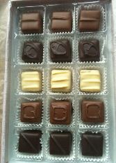 I’m not sure how deliberate the pairings were. I cut them all open to try and tell what I was eating but it was difficult to tell. The blackcurrant was absolutely tart against the dark chocolate but I think I liked it better than the (I think) lemon in milk chocolate though the (I think) passion fruit in white chocolate was nice.