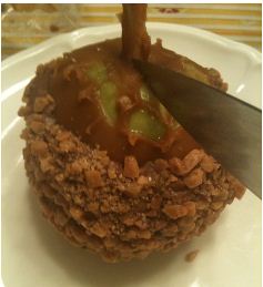 Chocolate Skor toffee apple – OMG LOVE! Here we have a large delicious ripe apple which I think is a Granny Smith or Spartan or something tart but sweet and hugely delicious, coated in caramel gooey deliciousness and dipped in chocolate before being covered in Skor. Dear sweet apple and sugary goodness this is a delicious balance of sweet and sour (apple). Absolutely glorious! The Skor is slightly crunchy and the caramel is smooth and the apple is delicious. Awesomeness.