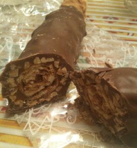 Caramel brownie coveted in chocolate –I’m wondering if this is the cheesecake as it is the only one I think might match. This is a sweet, dry brownie but brilliantly the caramel makes it moist. This is on a stick and I can just imagine a young child walking along, trying to fit it in their mouth as they nibble through layer after layer of chocolate, caramel and then brownie. It was a bit much for me but I’ve worked on developing less of a sweet tooth and few have like me so this is sure to be a general crowd pleaser. Makes me wonder if this isn’t a print candidate for slicing, wrapping in filo pastries and deep frying – YUM!