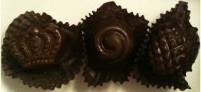 The Scharffen Berger chocolates themselves are typical shaped and filled chocolates with a ganache-esque or caramel filling (my choice). I chose champagne (the crown), coffee (the kind of pineapple one) and sea salt caramel (the swirl one). Each of these requires something different in the process of making and so I thought they were a representative sampling of the chocolate that they had to offer.