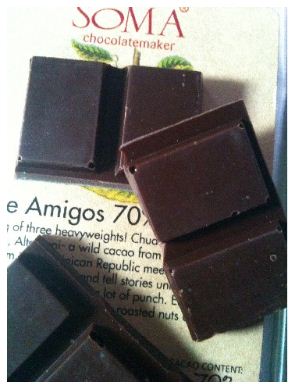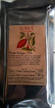 This Three Amigos bar is a combination of three chocolates – Venezuelan (Chuao), Bolivian (Alto Beni) and Dominican Republic into a harmonious joining together of chocolate. The scent is deep dark chocolate and a slightly dry edge. It is a rich, deep scent and you know it is something special just from the initial smell.