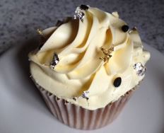 Passion Fruit – This glorious cupcake was awesome! Look at the gold and silver foil on the passion fruit icing. The sprinkled seeds are just the ‘icing on the cake’ as this glorious icing was the perfect balance between tart and sweet. The icing itself is lighter than it may seem and that intense burst of sharp passion fruit with the lightness makes this absolutely moreish. The cupcake itself is vanilla and glorious but it serves as the transport mechanism for the icing which is magnificent. In a cake this would be gloriously balanced.