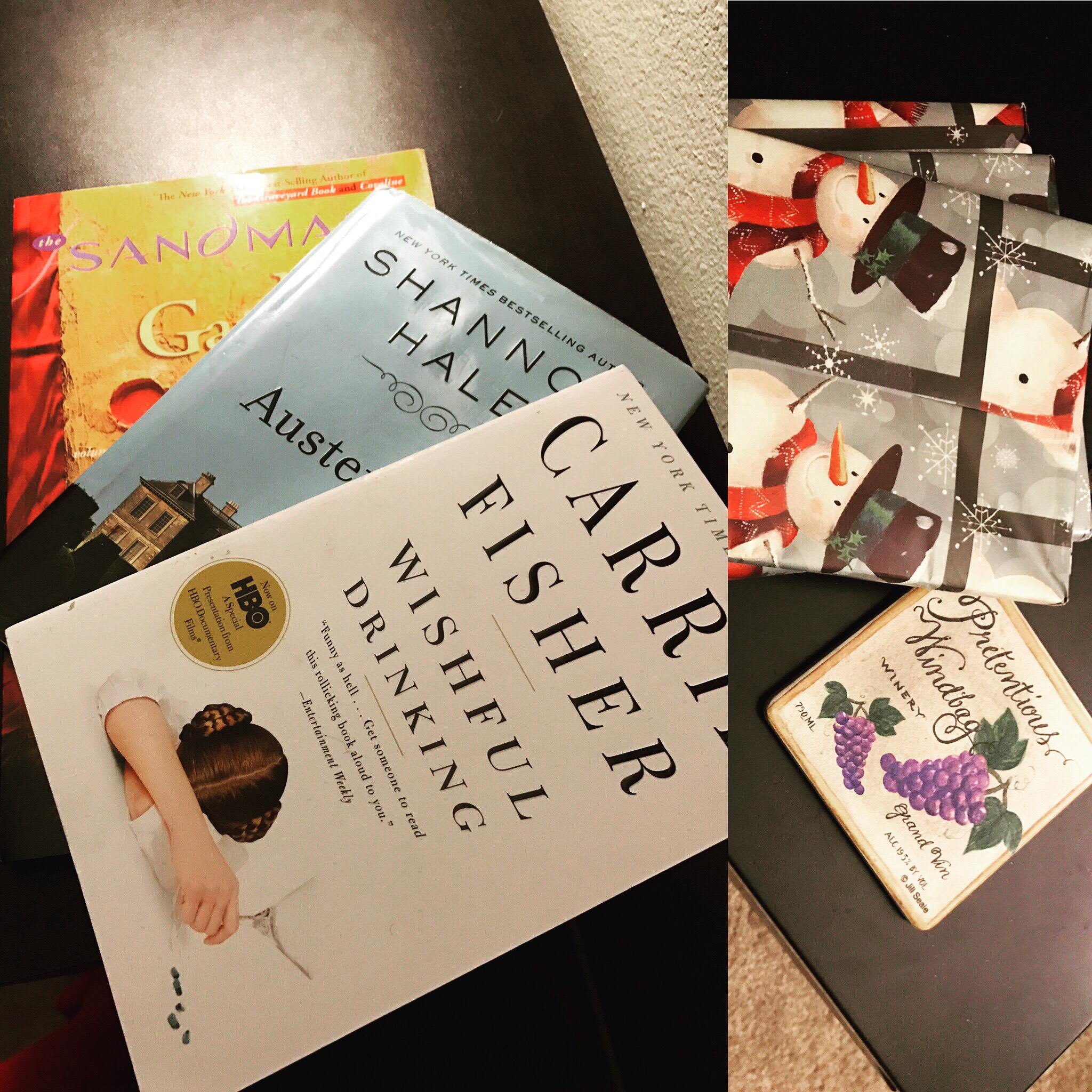 I came home from a poop day at work to a book exchange package from Katie (faintingviolet) and it made my day. I legit squealed when I opened the first book and saw Wishful Drinking. And I’ve been meaning to read Austenland and start Sandman for yearrrrs. (Although, I will confess that I’m actually super intimidated to start Sandman.) Thank you so much, Katie! And thank you for organizing this beautimous tradition.