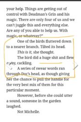 • Emmalita on “It came to something when you found yourself hoping that the footsteps you heard were ghosts.”I loved the ending! I don’t think it’s been out long enough to talk about why though.
