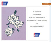 I’m thrilled to announce that thanks to your generosity, we were able to donate $1,350 to the American Cancer Society today. That’s the largest single donation we’ve ever made, and it brings our annual total to $1,675. Over all these years, we’ve donated $6,600 so far to the ACS in AlabamaPink’s name. Thank you everyone, from the bottom of my heart.