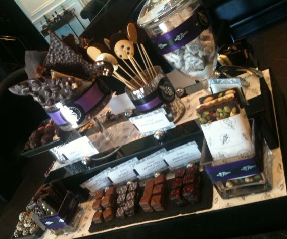 The chocolate lab is a concept which may seem a bit conservative to someone like me, but of course for Toronto it is quite advanced. There are a number of creations from the delightful ganache truffles through the flavoured bars to the absolutely edible (because they are made with Valrhona chocolate) chocolate shapes, everything that is made in the chocolate lab is of the highest quality. Narry a stray bubble in their bars, perfectly coated ganache and cleanly finished domes are on a table festooned with chocolate lollipops and all sorts of delights.