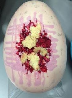 Raspberry Cheesecake – With crunchy biscuit crumble and freeze-dried raspberries (I think) this egg is absolutely sweetness with a tarty edge 😉 I got a little bit of a yogurt smell in there but lots of raspberry bits which I love. They are so sour and a great counterpoint for the white chocolate. The biscuit was soft, not hard so that was a pleasant discovery when I tried it. I actually enjoyed this egg and of all the eggs tried by the office, this came in second (the cookies & cream Squegg was the top winner in the office taste test).. So for people who aren’t really that in to chocolate or who get migraines from cocoa, this would seem to be the perfect alternative to the Fudge Brownie.