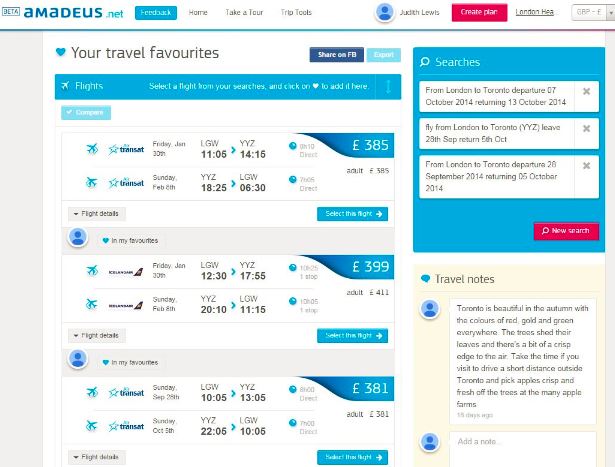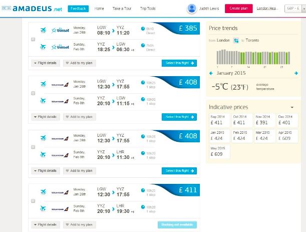 While I love Toronto in the fall, the birth of my new nephew or niece (I am hoping for a girl but I would spoil her rotten!) in late January is way more important and with Amadeus I can start my planning in the snatched moments of spare time I have, save the details, chat to husband, make a decision and then book and all without worrying that prices are going to suddenly change based on my history.